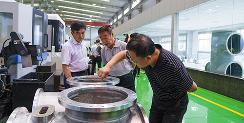 鉴定委员会的领导和专家们来到长高宁乡产业园,分别参观考察了净化装配车间、加工中心数字化车间、成套设备装配生产线和钣金柔性自动化生产线